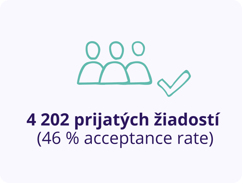 4 202 prijatých žiadostí (46 % acceptance rate)