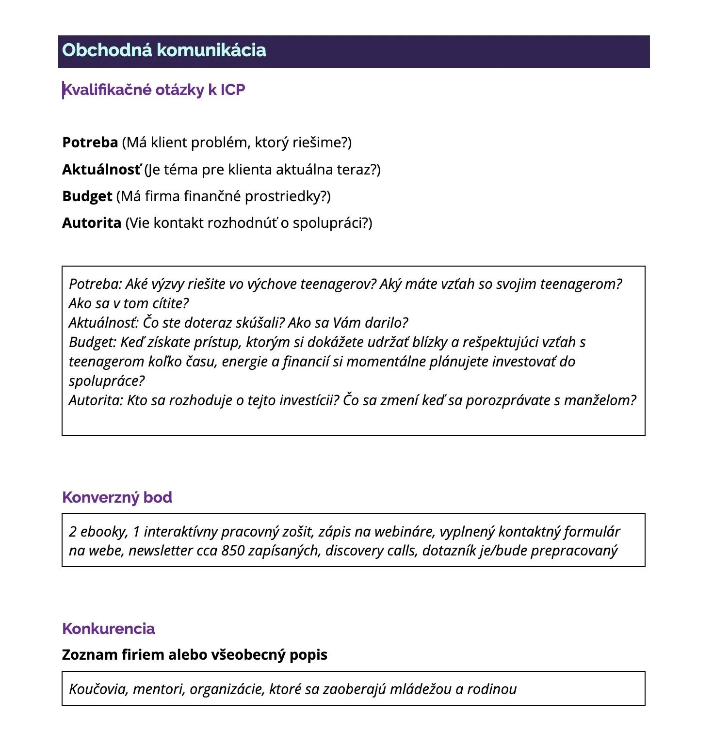 „Kurz bol pre mňa veľmi prínosný a detailne spracovaný. Najviac mi pomohli časti o definovaní ideálneho klienta a orientácii obsahu na cieľovú skupinu. Oceňujem, že všetko bolo podané edukatívne, zrozumiteľne a k veci. Kurz by som určite odporúčila. Ďakujem za možnosť zúčastniť sa, dalo mi to veľa.“